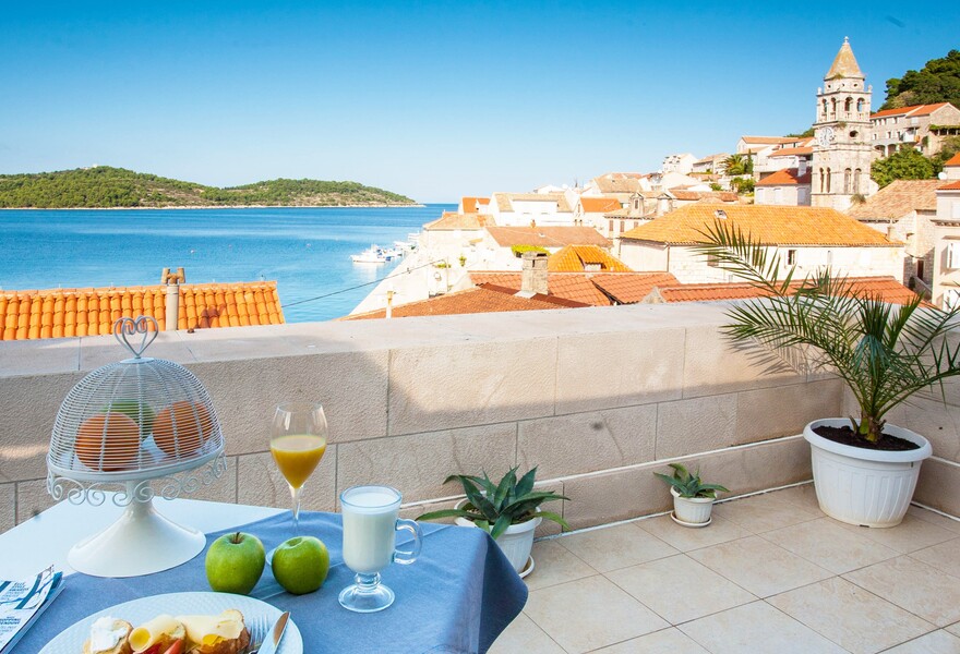 Helles und hübsches Hotel auf der kroatischen Insel Vis. Die besten Zimmer verfügen über Kingsize-Betten und geräumige Balkone mit Blick aufs Meer. Im Restaurant Boccadoro können Sie frische mediterrane Küche probieren oder einen Drink im ruhigen Gartenhof genießen. Ein stilvolles Gästehaus am Meer.