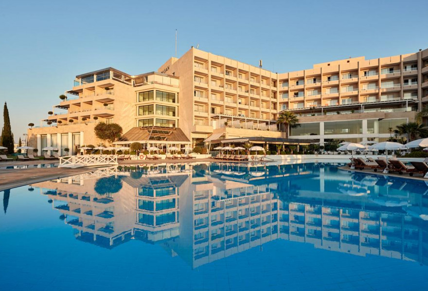 A five-star offering set beside Ayia Napa's Pantachou Beach. Elegant rooms are spacious and light with all the usual luxury trappings including wonderfully indulgent bathrooms. The best offer balconies with panoramic sea views. Expect a good range of facilities and, of course, that alluring beach!