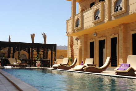 This orientalist seafront hotel is tucked away in Dahab on Egypt's south coast. Latticework detail and dome-style alcoves add a stylised feel to the contemporary guestrooms, while a pretty pool occupies the interior courtyard. The hotel offers direct sea access, perfect for a family diving holiday.