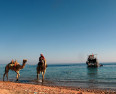 Dahab lies on the south Sinai peninsula so the famous Mount Sinai and St. Catherine's monastery are not far away. You can also organise a camel or jeep safari into the desert. Evenings will likely be spent in one of the numerous seafood restaurants which line the shore most of which are excellent value.