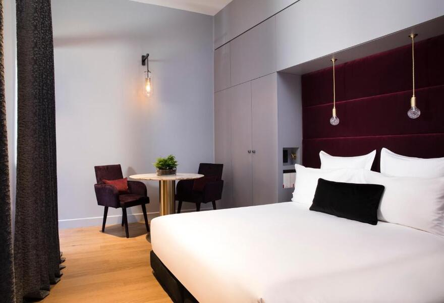 An elegant hotel in a grand 18th century townhouse, flanked by two multi-story modern structures. Chic contemporary rooms filled with sunlight, parquet floors, modern art and giant stand-alone bath tubs. A romantic city break geared up for wine lovers and culture vultures.