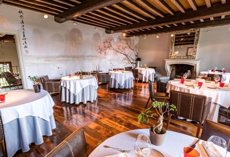 Ein charmantes, mit einem Michelin-Stern ausgezeichnetes Restaurant mit Zimmern in einem Birnbaumgarten. Individuell gestaltete Zimmer mit aussagekräftigen Tapeten und verwöhnenden Badezimmern mit großen Wannen. Hervorragende französische Küche, ein Garten und eine Terrasse, die zum Entspannen einladen. Elegant, friedlich und zauberhaft.