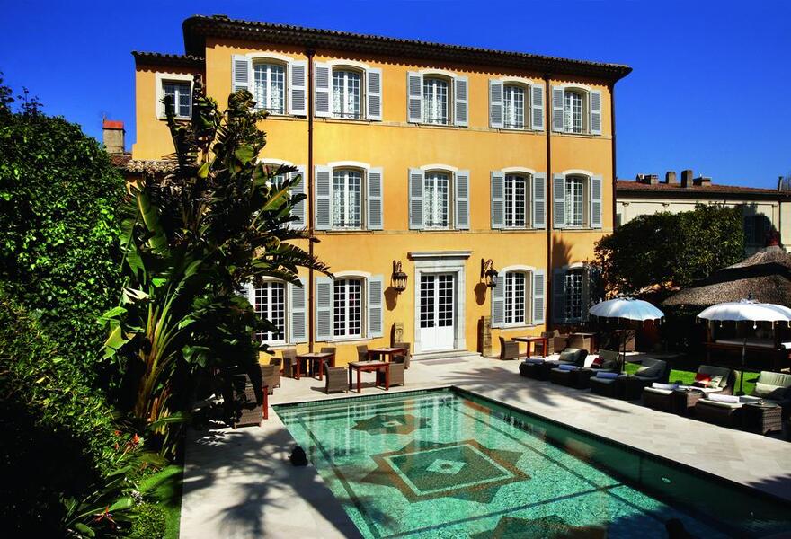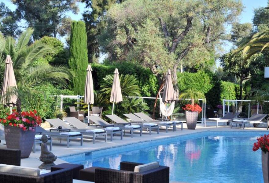 Luxurious Provencal residence boasting luscious manicured gardens, tropical vegetation and a relaxing pool with terrace. Rooms are elegant all with private terrace or garden. A relaxing spa, plus gourmet Mediterranean cuisine complete the picture. A tropical oasis just 5km from the beach.
