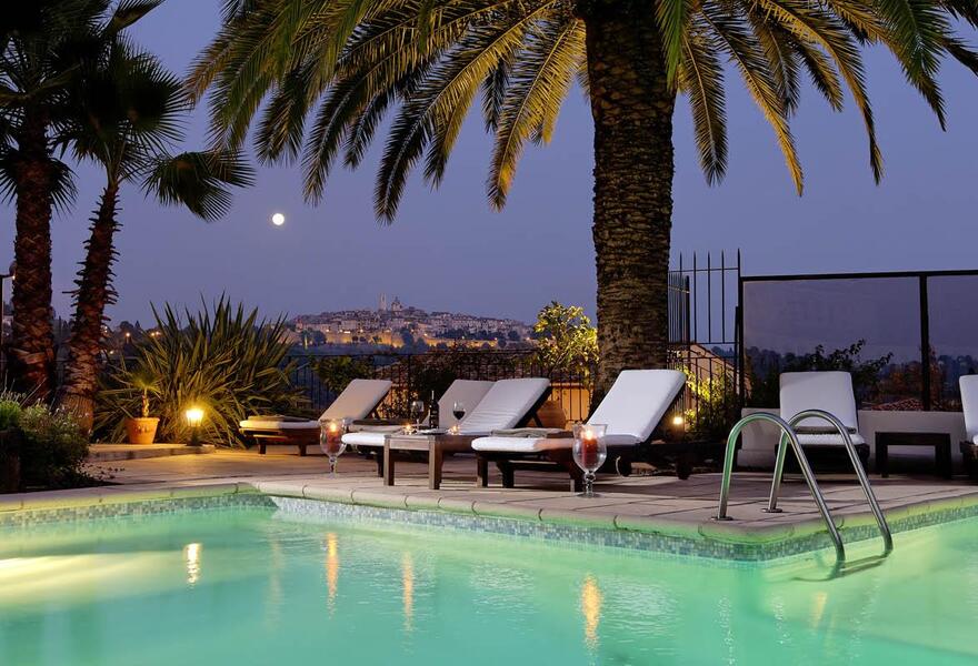 A charming hotel, just outside Saint-Paul-de-Vence. Set amidst mature gardens and olive groves, the interiors blend colourful furnishings with a refined, shabby-chic aesthetic. There's a heated outdoor pool, a petanque pitch and seasonal poolside dining. A peaceful Provencal escape.