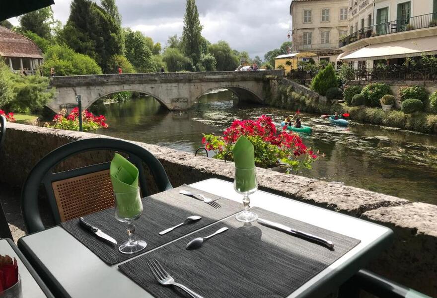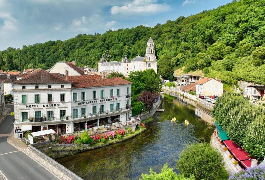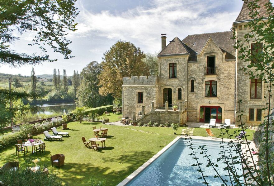 • Hostellerie les Griffons is a charming 17th-century mansion perched on the banks of the Dronne River. Families, couples and groups will love the striking location, the lush gardens, outdoor pool and buzzy restaurant. A simple & well-priced choice, perfect for exploring the village of Bourdeilles.