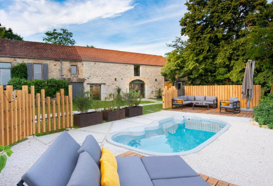 Tucked away in the Dordogne, this peaceful retreat blends rustic charm with a refined modern touch. Exposed stone walls, oak beams, and antique furnishings create an inviting, stylish interior. An outdoor pool, cosy lounges, and local cuisine offer the perfect escape in true French countryside.