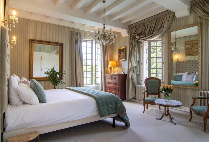 • Château Le Mas de Montet sits within 130 acres of grounds and ancient woodland, perfect for outdoorsy visitors. Book one of ten rooms and suites — most of which have fourposter beds — to unwind amidst antiques pieces and sumptuous textiles. Delicious dinners are served in the elegant dining room, there's a great pool and the team can arrange kayaking, cycling and horse riding excursions.