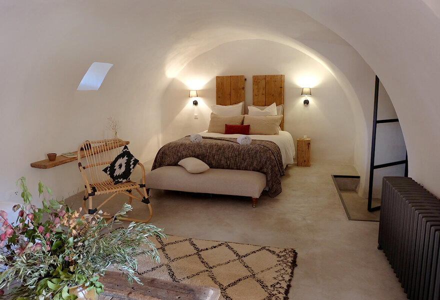 Golden hued 17th century stonework, vaulted ceilings and contemporary furnishings. Rooms are the size of bijoux apartments with muted palettes, bold rugs and modern art. Breakfast is delicious and mostly homemade. In high season dinner is served. Relax in the hidden hot tub and plunge pool.
