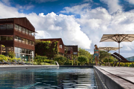 Unusual, very contemporary design hotel with gourmet food. Spectacularly modern rooms and suites set in separate pavilion conversions. Lots of natural light, terraces onto gardens, glorious swimming pool, and fabulous food. Somewhere for restoring wellbeing.