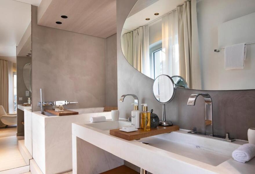 A chic Parisian retreat steps from the Madeleine. Elegant interiors blend Haussmannian charm with modern touches like plush velvets and sleek lines. Indulge in a tranquil spa, a heated pool, and the intimate restaurant serving refined French cuisine. Perfectly poised for a stylish city escape.