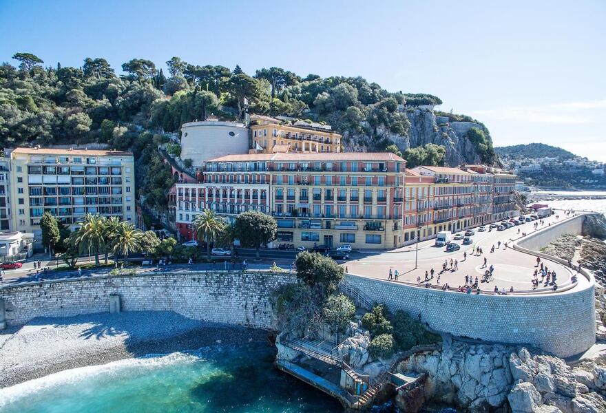 Dieses charmante Vier-Sterne-Hotel befindet sich direkt am Meer in Nizza. Die Zimmer sind hell und luftig, mit Holzböden und frischer, weißer Bettwäsche. Die besten Suiten bieten eine private Terrasse; buchen Sie ein Privilege-Zimmer für einen Panoramablick auf das Meer durch die französischen Fenster. Entspannen Sie sich in der freundlichen Hotelbar. Ein stilvoller Aufenthalt.