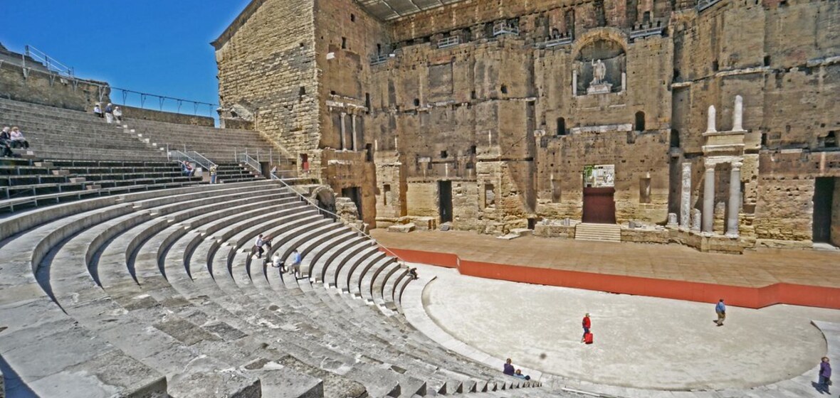 Besucher, die wegen der römischen Ruinen nach Orange kommen, können das Théâtre Antique - eines der am besten erhaltenen römischen Denkmäler der Antike - und den Arc de Triomphe bewundern. Der mit kunstvollen Schnitzereien geschmückte Bogen, die von den Eroberungen des Augustus über die Gallier erzählen, ist ebenfalls noch sehr gut erhalten. Wenn Sie während des Festivals Chorégies d'Orange anreisen, können Sie das Theater von seiner besten Seite erleben: 10 000 Menschen strömen in das Theater, um eine Opernaufführung zu erleben. Weitere römische Schätze, die in der Region ausgegraben wurden, können Sie im Musée d'Orange besichtigen. Abenteuerlustige können auf den Rad- und Wanderwegen, die sich durch die Landschaft schlängeln, nach historischen Denkmälern Ausschau halten und die Colline Saint-Europe erklimmen, um eine herrliche Aussicht zu genießen.