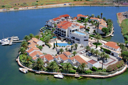 Hôtel de luxe sur une île privée au bord de la Méditerranée. Chambres et suites spacieuses, choix de restaurants, piscine privée, spa thalasso et jardins tropicaux luxuriants. L'hébergement est de style contemporain : les planchers en bois foncé contrastent avec le mobilier blanc et pastel pour créer des espaces frais et aérés.