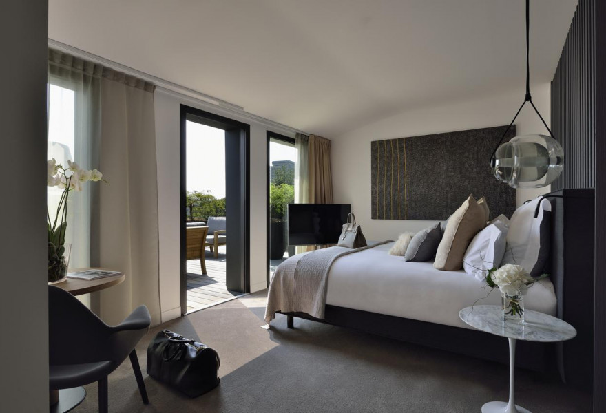 This 5-star design hotel occupies an elegant townhouse in the heart of Rennes. The individually styled guestrooms are spread across four floors and feature boutique wallpaper and homely linens in a pastel palette. A subterranean wellness centre and gourmet restaurant complete the luxury experience.