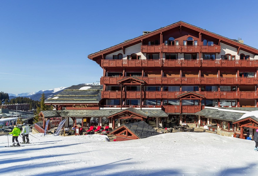 A chic hotel with ski-in, ski-out access to the slopes of the Three Valleys. Interiors are stylish yet cosy, with smart wall panelling, comfy beds and warm colours. The sophisticated restaurant serves gourmet food, plus there's a bar and sauna for easing weary limbs. Ideal for couples or families.