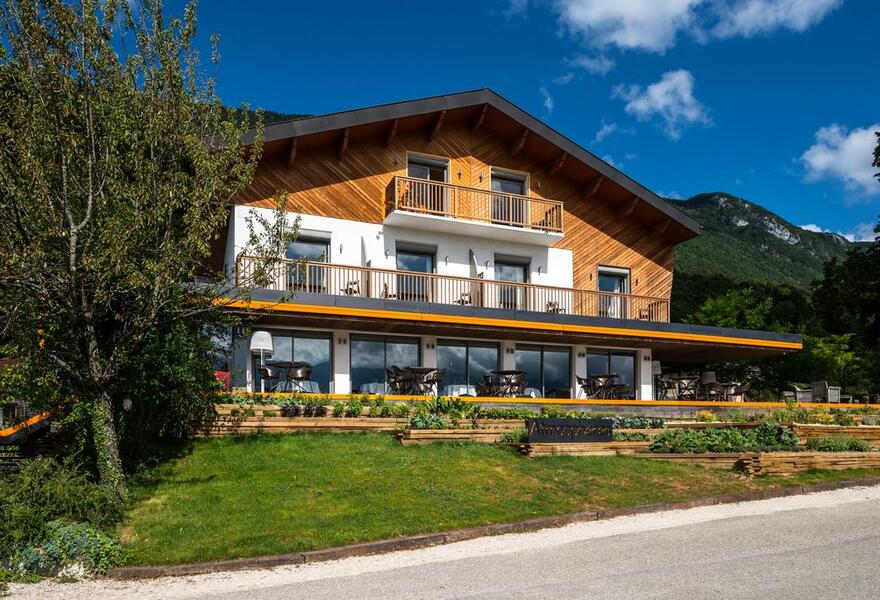 A gourmet Restaurant with Rooms set in a picturesque spot in Le Bourget-du-Lac. Accommodation is contemporary in style with warm hues, minimalist design and crisp white linen. The fine-dining restaurant uses local produce to great effect. A tranquil spot to totally unwind.