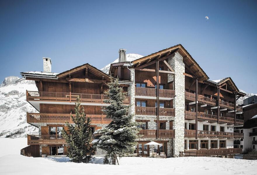 5-Sterne-Unterkunft am Fuße der Pisten von Tignes. Die Inneneinrichtung ist warm und rustikal, im Stil einer Skihütte, nur mit etwas mehr Luxus. Mit einfachem Zugang zu den Pisten, einem verwöhnenden Spa, Skischließfächern und einem Gourmetrestaurant. Alles, was man für einen perfekten Urlaub in den Bergen braucht.