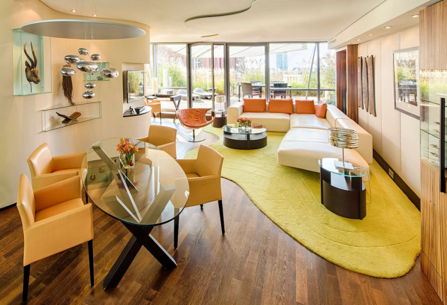 A large uber modern hotel close to the city centre. Fabulous views of the Rhine valley from the rooftop pool. Contemporary, bordering futuristic style throughout. Rooms are large and individually styled. A number of dining options including an excellent Japanese restaurant. City chic.