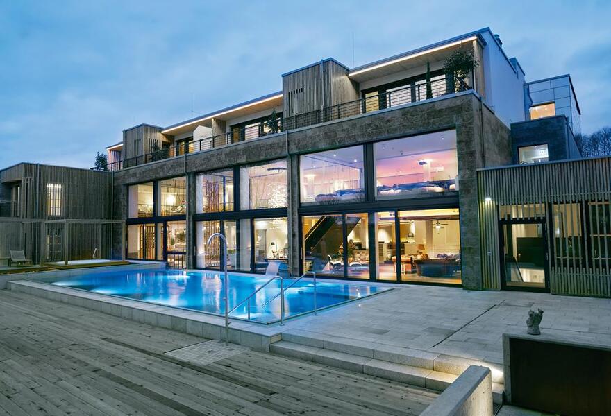 This wellness hotel, tucked away in the serene Sauerland region, offers a relaxing retreat amidst nature. Its warm, wood-toned decor blends rustic charm with modern comfort. Guests can enjoy gourmet meals, local wines, and unwind in the expansive spa. A peaceful haven, perfect for every season.