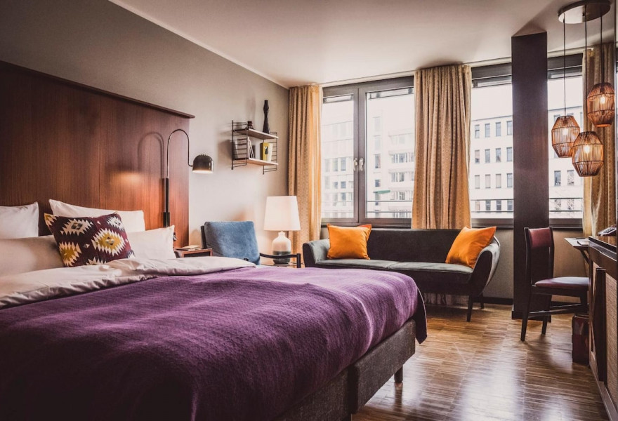 A stylish boutique hotel in the heart of Düsseldorf’s Pempelfort district. The mid-century modern decor is paired with bold, contemporary art throughout. Guests can enjoy breakfast, evening drinks at the bar, and a 24-hour concierge. Effortless comfort, ideal for design lovers and art enthusiasts.