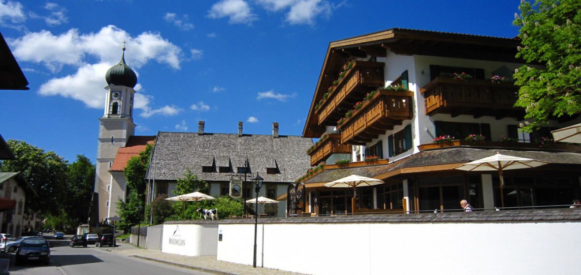 Das familiengeführte Hotel liegt in der Alpenstadt Oberammergau und bietet ein authentisches bayerisches Erlebnis mit modernem Komfort. Die Zimmer sind geräumig und verfügen über die typische Holzvertäfelung im Chalet-Stil, sichtbare Balken und Balkone. Ein charmanter Ausgangspunkt für Ski- und Wanderurlaube.