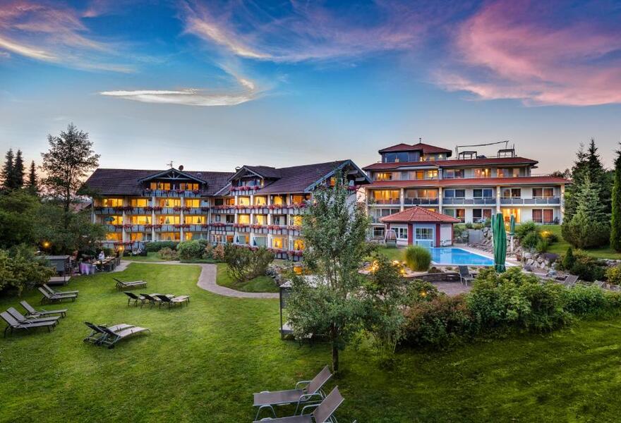 A serene wellness retreat in Oberstaufen, this 4-star gem balances luxury with the charm of the Allgäu. Sophisticated yet cosy, its interiors blend alpine elegance with modern comfort. Indulge in pools, saunas, tennis, and gourmet dining. A perfect escape for relaxation and active exploration.