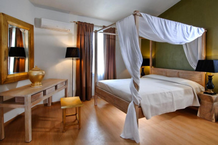 L'hôtel est situé dans un manoir du XIXe siècle, plein de caractère et de charme authentique. Les chambres sont dotées de murs en pierres apparentes, de lits à baldaquin et de balcons donnant sur la rue piétonne en contrebas. À seulement quatre minutes du port vénitien, vous trouverez de nombreux restaurants de bord de mer à proximité.