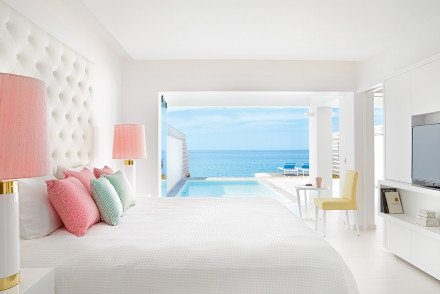 Un palais digne du légendaire roi Minos lui-même. Les villas disposent de piscines privées, d'un décor blanc sur blanc et d'immenses baies vitrées. Il y a un choix de neuf restaurants et bars à la cuisine décontractée ou raffinée, ainsi que de nombreuses activités pour les couples et les familles. Une escapade gâtée.