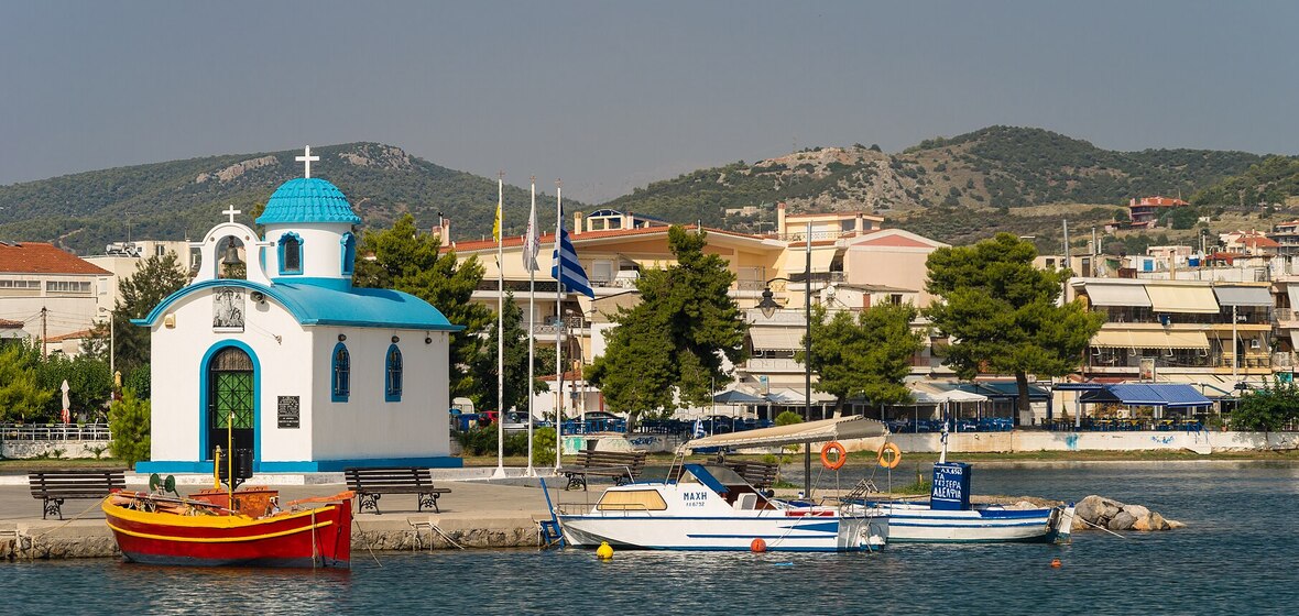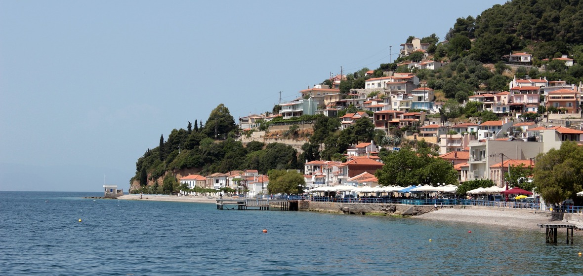 Halkida — also called Chalcis or Chalkida — is the island’s largest town, and a great hub for foodies and culture buffs. The southern resort town of Karystos, on the other hand, has a more laid-back feel, with a popular promenade and lively tavernas. For ancient landmarks, visit the 5th century BC ruins of Eretria, Evia’s towering Venetian fortresses, or take a guided island tour. The team at the best place to stay on Evia will be happy to help you plan your adventures.