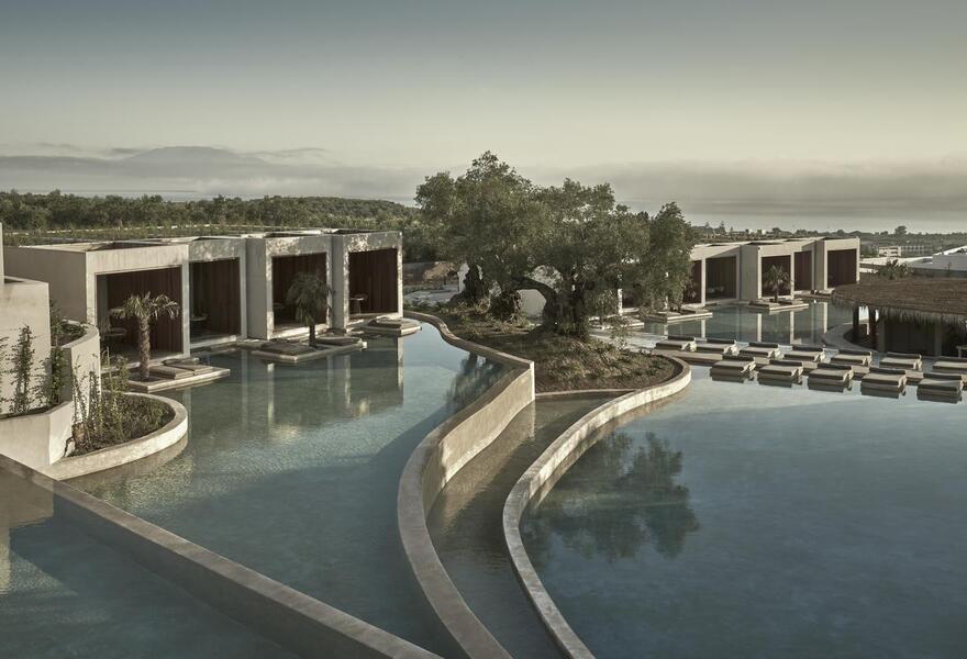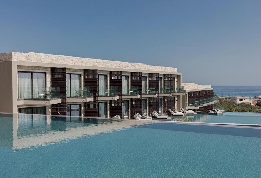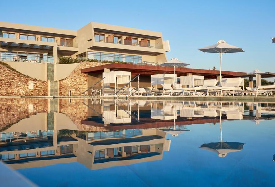 Ein schickes, modernes Hotel mit Zimmern, Suiten und Villen (für bis zu 5 Personen). Die Einrichtung ist schlicht und stilvoll, und von der Anhöhe aus hat man einen wunderbaren Blick auf das Meer. Außerdem gibt es ein umfangreiches Spa, herrliche Terrassen und gutes Essen. Ein schöner Ort für Gruppen und Paare, die einen luxuriösen Aufenthalt in Strandnähe suchen.