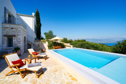 Luxuriöser Rückzugsort zur exklusiven Nutzung in einem traditionellen korfiotischen Herrenhaus, mit Blick auf das Ionische Meer und in der Nähe von Korfu-Stadt.