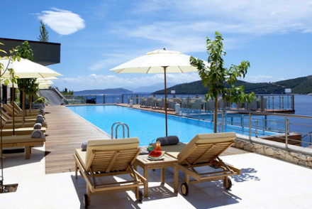 Luxus und Abenteuer oberhalb der unberührten Karavostasi im Ionischen Meer. Die mühelos kühlen Innenräume geben den Ton an, während die vom Boden bis zur Decke reichenden Fenster den Blick auf das endlose Meer freigeben. Die Gäste können sich mit griechischen und italienischen Köstlichkeiten verwöhnen lassen, im Spa entspannen oder ein Bad im privaten Infinity-Pool nehmen. Ein Stück vom Himmel.