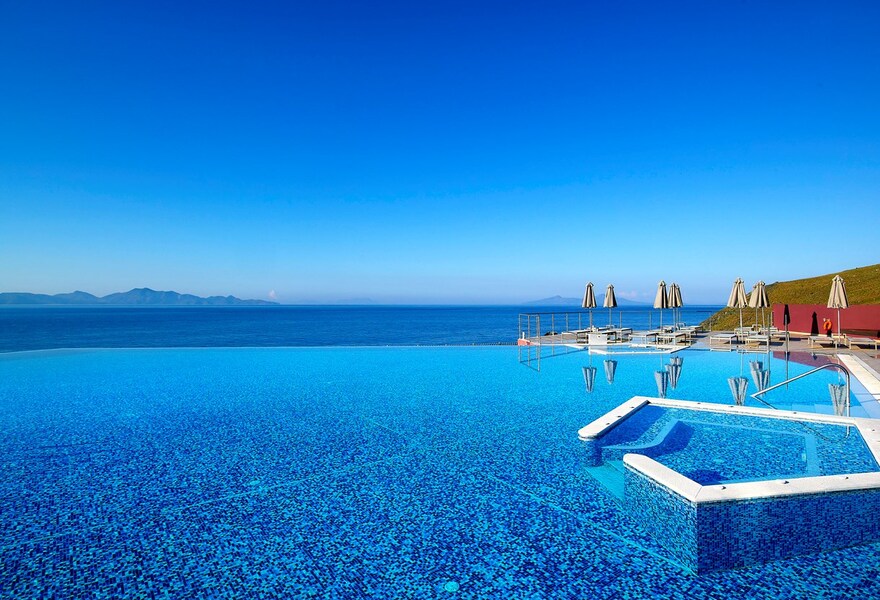 Dieses luxuriöse Lifestyle-Resort liegt an der Südwestküste von Kos. Die eleganten, fast ganz in Weiß gehaltenen Suiten verfügen über Panoramafenster mit Meerblick, während eine Reihe von Michelin-Sterneköchen in den acht Restaurants des Resorts Ihren Appetit anregen. Entspannen Sie sich am Strand oder bleiben Sie mit den Wassersportangeboten des Resorts aktiv.