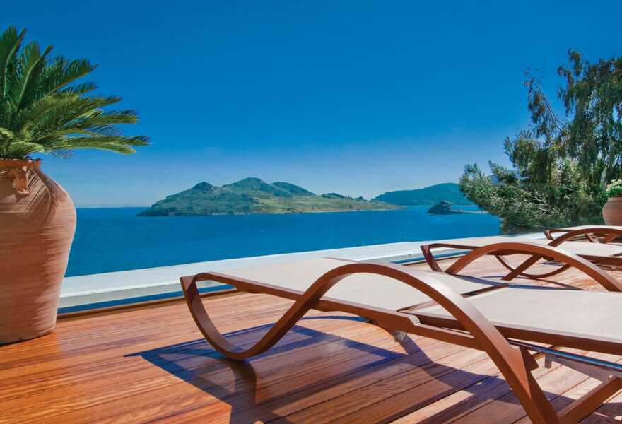 • Ansichten - Alle Zimmer haben einen herrlichen Blick auf die Ägäis und die Bucht von Grikos