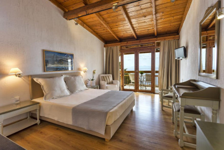 Chic accommodation boasting an enviable location overlooking the sea. Rooms are simply designed, yet stylish; think polished wooden floors, light hues and modern bathrooms. The restaurant serves Greek dishes with touches of Mediterranean cuisine and there's a glorious infinity pool.