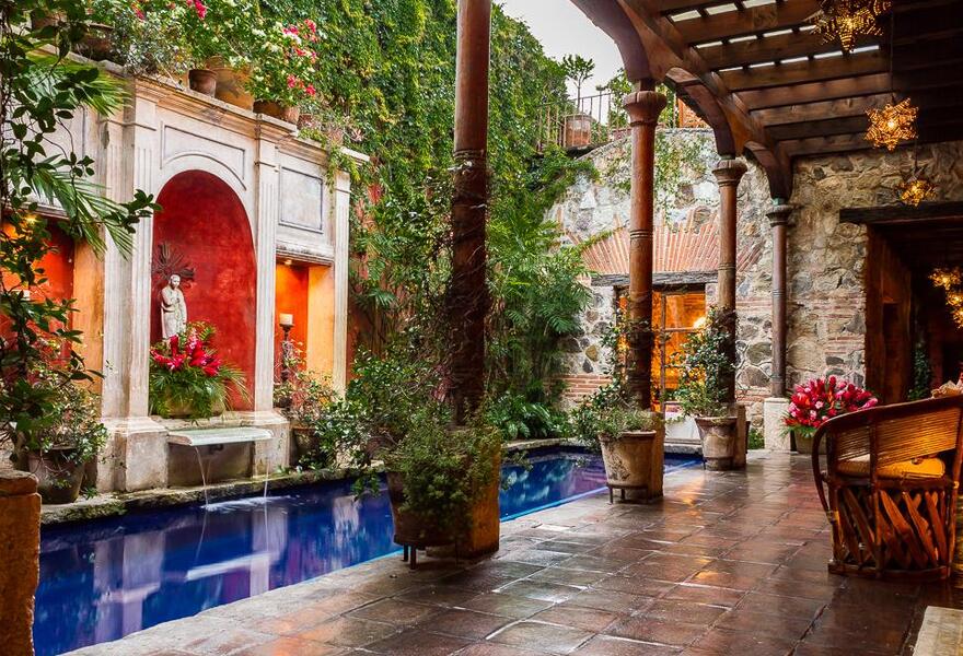 • San Rafael Hotel is a gorgeous boutique hotel in the historic centre of Antigua. There are just seven beautifully designed rooms, traditional in style, with exposed stonework, antique furniture and beamed ceilings. A tranquil garden is the perfect spot to unwind with a drink after a day's exploring.