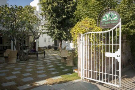 Ein Zufluchtsort der alten Seele am Rande von Jaipur. Fünfzehn besondere Suiten mit farbenfrohen Akzenten, ein ruhiger Swimmingpool, eine romantische Anlage und ein köstliches Frühstück.