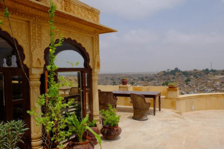 Traditional townhouse property within the fortress walls. Stone walls and floors, Indian carpets, furnishings in deep, vibrant hues. Stunning views of Jaisalmer from the roof terrace. Vegetarian homemade Indian food can be served on request. Excellent location with tremendous comfort.