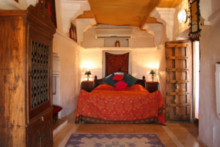 A quiet riad-like traditional haveli high above the golden city. With just two rooms this is ideal for two couples or a family. Interiors have been done with care and style and there's a comfy rooftop terrace for evening views. Ideal for a tranquil stay; a character-filled home from home.
