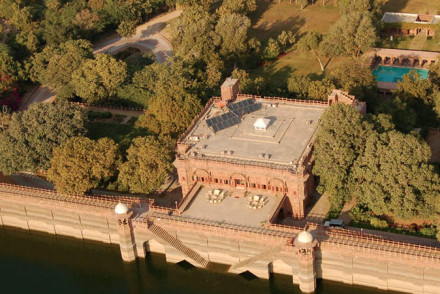 An utterly romantic summer palace overlooking a 12th century lake in 300 acres of landscaped grounds. The bedrooms are large, airy and elegant, and the dining room has the most sublime view across the lake. Sandstone waterways and pergolas, Mawari horses to ride in the hills. A regal experience.