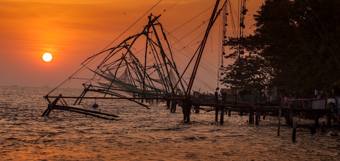 Amble around Fort Kochi on foot to marvel at sights which have dazzled travellers for over 600 years. Admire huge cantilevered Chinese fishing nets in the harbour, weave your way through winding streets lined with Dutch, Portuguese and British-era mansions, and pick a perch in artsy cafes or hole-in-the-wall bars facing lively games of cricket played under the banyan trees. Delve into Kerala’s complex past at the Indo-Portuguese Museum, the Mattancherry Palace, the Kerala Folklore Museum or the 1568-built Paradesi Synagogue. St Francis Church, believed to be the oldest European-built church in India, is another stand-out.