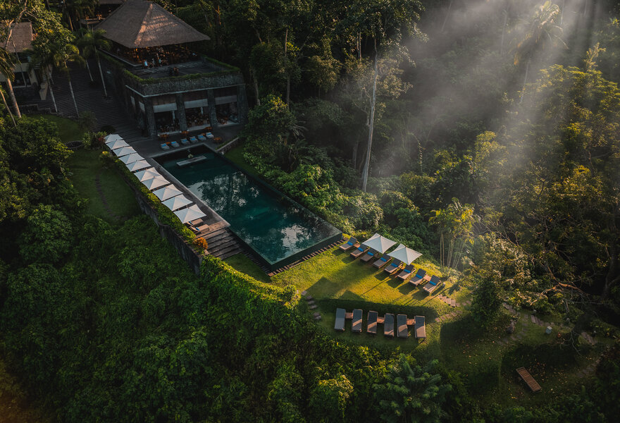Ein ruhiges Refugium inmitten einer üppigen tropischen Umgebung. Die luxuriösen Zimmer verfügen über große Glastüren, die auf abgeschiedene Terrassen mit atemberaubenden Ausblicken führen. Ein verwöhnendes Spa und ein Yogastudio unter freiem Himmel sorgen für vollkommene Erholung. In den ausgezeichneten Restaurants können Sie zwischen indonesischen und internationalen Gerichten wählen. Vollkommene Glückseligkeit.