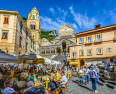 Amalfi’s location makes it an excellent base for exploring the whole of the Amalfi Coast. It's also ideal for anyone looking for a sandy beach: its beach sits just along from the harbour proper, and there’s a second, much larger beach just around the headland under the little town of Atrani. Amalfi’s previous power and grandeur means it has quite a number of historic sites and sights, including a beautiful Duomo and a handful of impressive museums. But one of the great pleasures of Amalfi is losing yourself in the whitewashed-warren of alleyways and courtyards just behind the waterfront. There are lots of fantastic shops and boutiques, including a number selling extremely high quality paper produced locally, and plenty of examples of the local ceramic traditions.