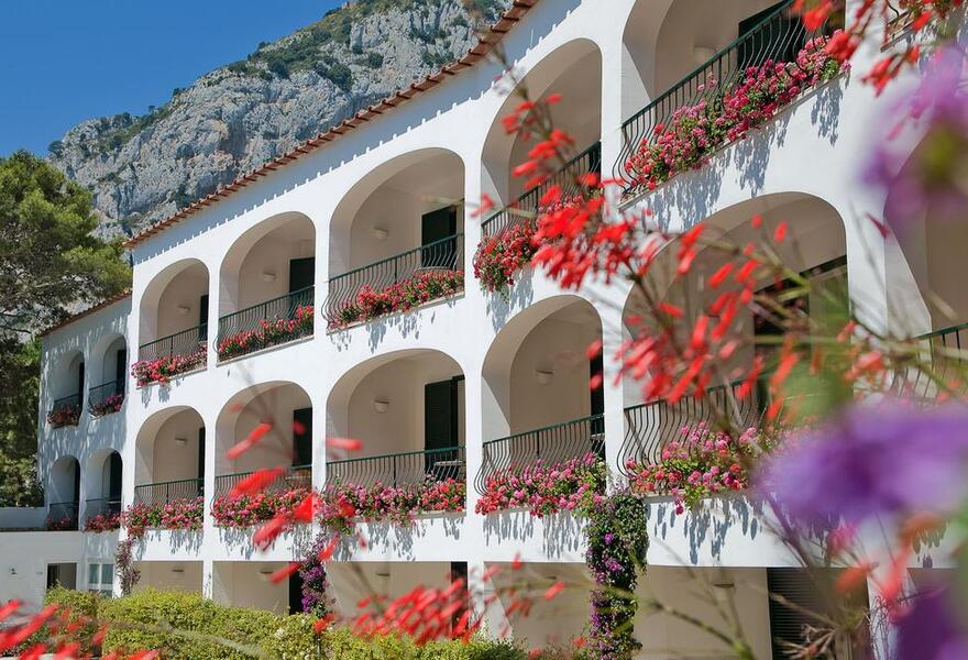 A little gem of a hotel in a breathtaking location - high up on the island's edge with dramatic views of the Faraglioni limestone pinnacles. An oasis of calm with luxurious, elegant rooms, sublime food served on candlelit verandas, and two salt water pools. A great choice for honeymooners.