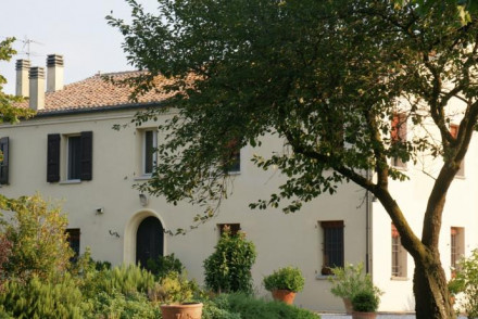 A sandstone farmhouse just outside Ferrara. Lovely spacious rooms, suites, and triples painted in creams with wooden beam ceilings, stone floors, and walk out terraces onto the garden. Good breakfasts, family friendly, and excellent value for local exploring.
