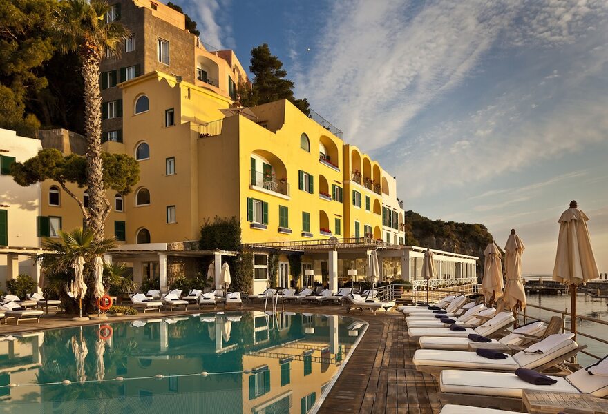 Ein Küstenjuwel in Lacco Ameno, das den Glamour der Jahrhundertmitte versprüht. Die Einrichtung mischt klassischen italienischen Charme mit modernen Möbeln und Einrichtungsgegenständen - z. B. verzierte Fliesenböden und fabelhafte vergoldete Spiegel. Die Gäste können ein mit einem Michelin-Stern ausgezeichnetes Restaurant, Spa-Behandlungen, einen einladenden Poolbereich und direkten Zugang zum Strand genießen.