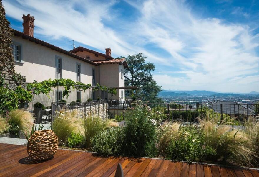 Two historic buildings refurbished and combined to create a boutique hotel perched on a hill with stunning views over Bergamo. Simple elegant decor makes use of original features such as exposed brick ceilings and arches. There's a wonderful restaurant as well as charming al fresco dining terraces.