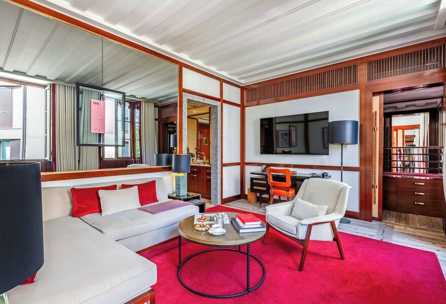 Tucked in Milan’s vibrant Navigli district, this boutique stay blends urban charm with a tranquil courtyard setting. Inside, it’s a treasure trove of vintage sports memorabilia, Persian rugs, and bold Italian design. With a chic cocktail bar and inventive dining, it’s a stylish, laid-back retreat.