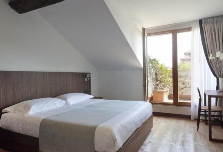 A boutique gem combining modern chic with historic charm, in the heart of Bergamo. Stylish decor features contemporary design with a Bauhaus feel and artful touches. With a fantastic breakfast in the courtyard, a dinner of Lombardy specialities on request and a wellness area, it's the perfect stay.