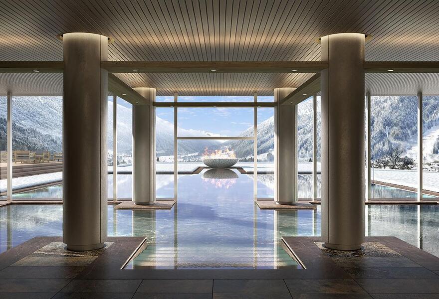 This luxury hotel and spa is set in the spectacular landscape of the Dolomites Mountains. In the spacious suites, the forest is invited in through floor-to-ceiling windows and the use of natural and locally sourced materials. Head to the spa for a wellness treatment with mountain views.